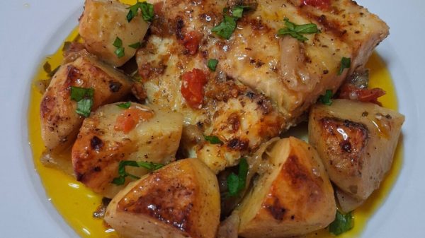 Συνταγή για πέρκα με πατάτες στο φούρνο για το μεσημεριανό όλης της οικογένειας, με μυρωδικά και μελωμένη σάλτσα φρέσκιας ντομάτας. Αξίζει να τη δοκιμάσεις....