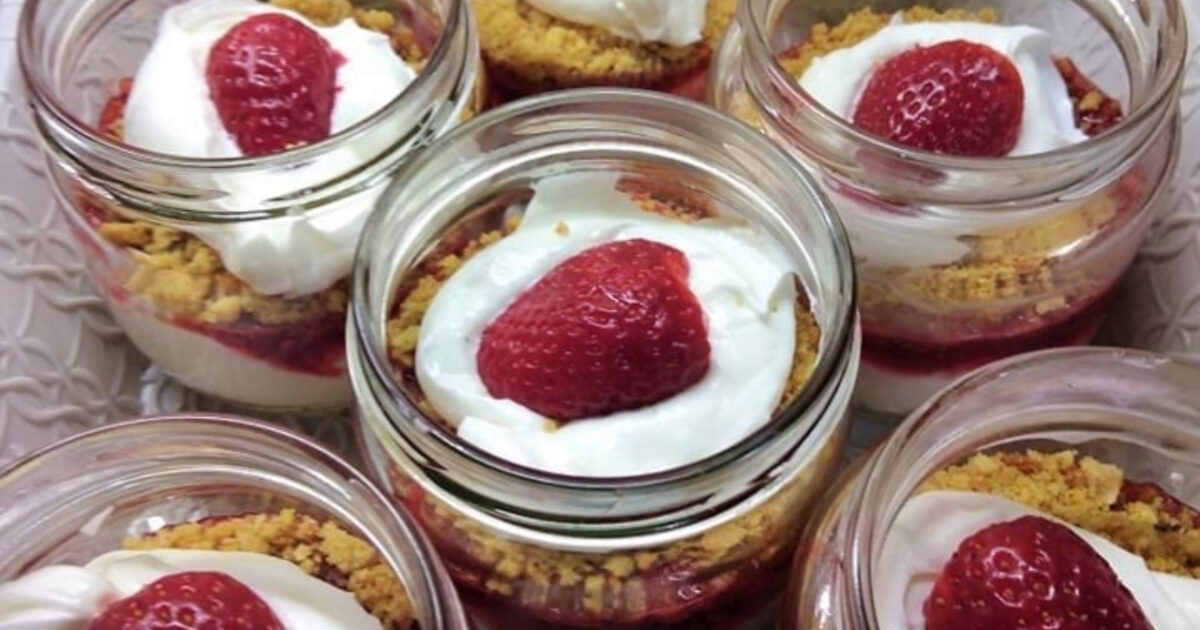 Δε χρειάζεται να δίνεις λεφτά στα ζαχαροπλαστεία όταν με λίγα υλικά και εύκολη εκτέλεση μπορείς να φτιάξεις τα δικά σου χορταστικά και παράλληλα δροσερά και με ελαφριά γεύση κεράσματα. Ατομικά γλυκά σε ποτήρι ή σε βαζάκια που δε χρειάζεσαι πια, με μπισκότο λεμονιού, δροσερή σαντιγί και ακόμη πιο δροσερές φρέσκες φράουλες!