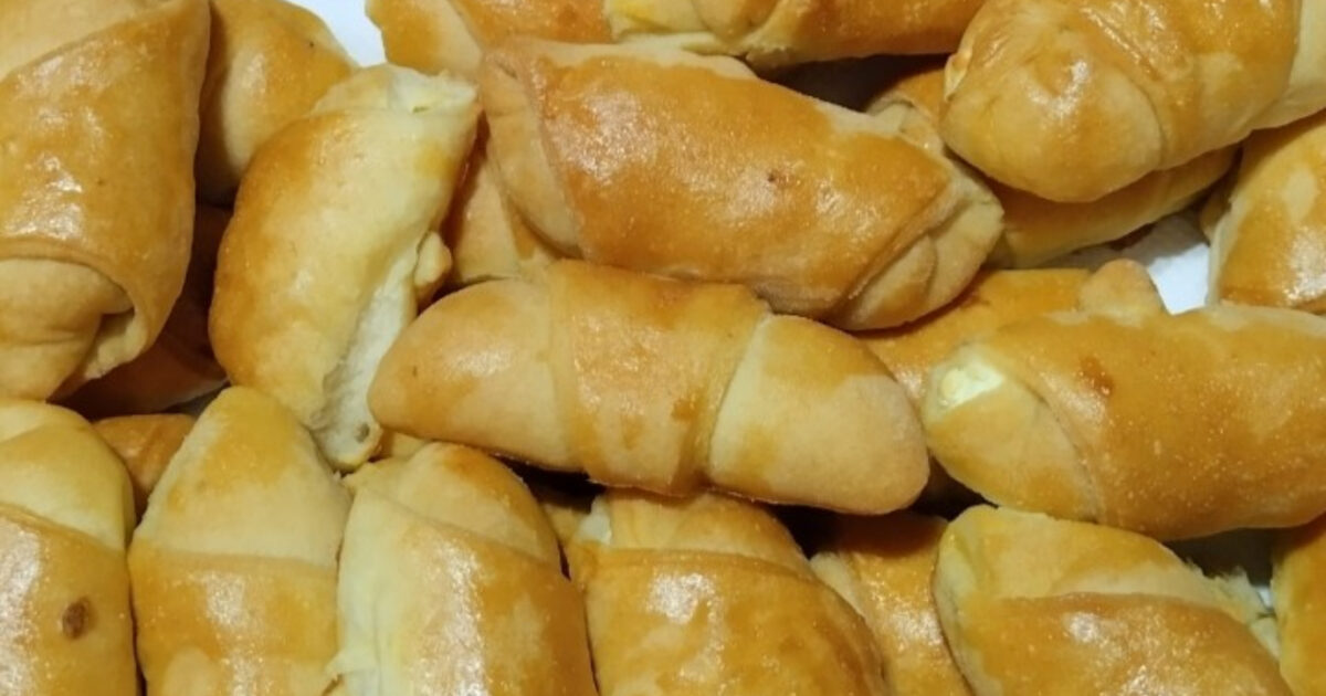 Τοποθετούμε τη γέμιση στη φαρδιά πλευρά κάθε κομματιού και τυλίγουμε σε ρολάκι. Τα τοποθετούμε σε ταψί με λαδόκολλα, τα αλείφουμε με αυγό και ψήνουμε σε προθερμασμένο φούρνο στους 180°C στον αέρα, μέχρι να ροδίσουν. Σας άρεσε αυτή η συνταγή; Πείτε μας την γνώμη σας στα σχόλια.